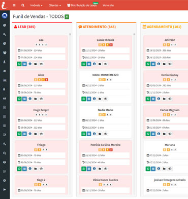 Kanban organizado para corretores acompanharem seus atendimentos e gestores visualizarem e analisarem o desempenho individual de cada corretor.